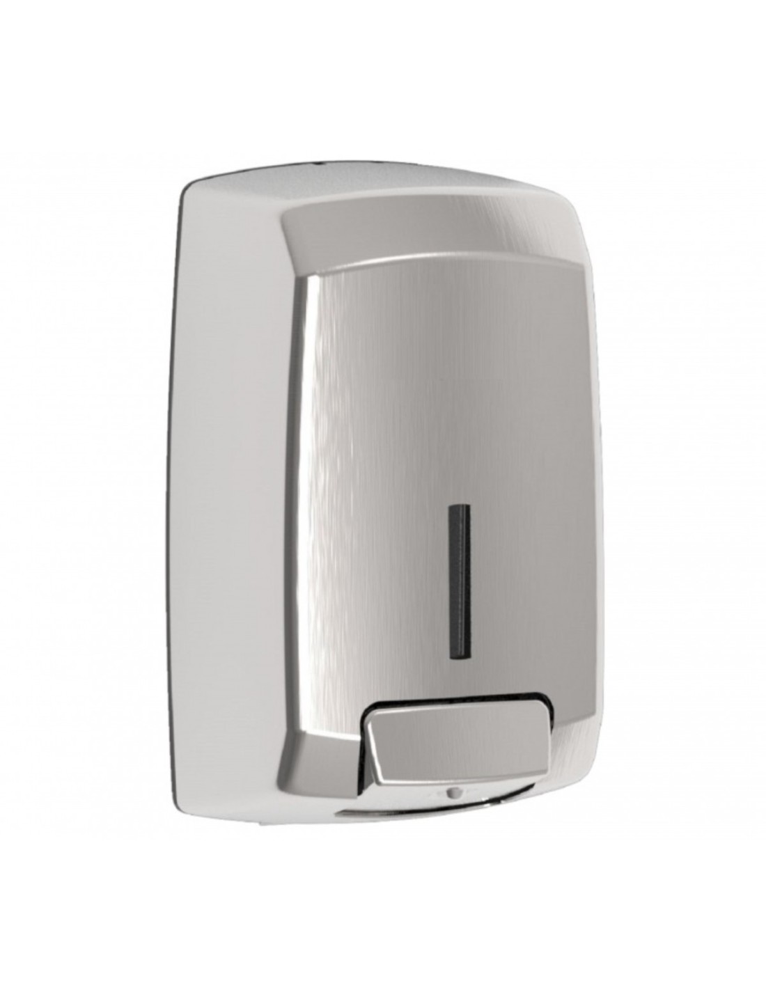 Jabonera INOX Satinado Style Dosificador de jabón líquido rellenable 1,1 Lt de capacidad. Accionamiento manual presionando el pulsador cromado. Cierre con cerradura y llave de seguridad en acero Inox. Recomendado para lavabos con alta frecuencia de paso. Colectividades. Ranura para visualización del contenido. Admite gel hidroalcohólico. Carcasa estampada fabricada en una sola pieza de acero Inox AISI 304 de 0,8mm de espesor. Base fabricada en ABS con aditivo antiestático para repeler el polvo. Válvula antigoteo resistente a la corrosión, fabricada en PA con junta quadring de silicona y bola de acero AISI 316. Depósito fabricado en SAN transparente para facilitar la visión del contenido.